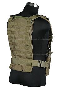 This lightweight Wasatch Chest Rig is made from Cordura, giving this rig a robust build. It has a fully adjustable size to allow for different fitments and feautures MOLLE webbing on both the front and the back. It is capable of holding 12 M4 mags - 2 in each pouch, and has velcro openings for allowing fitments of plates (not the kind you eat off). Features ample shoulder padding, providing lots of comfort even for prolongedd use.
